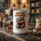 A Funny Coffee Mug Design of an Capybara drinking Coffee and the text Morning Coffee.