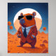 Capybara with a suit and sunglasses on planet Mars. Unique modern wall art. Printed or digital download printable home decor.