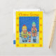The original funny Christmas illustration on this seasonal postcard has three cute carol singers enthusiastically singing a festive tune in the December snow. The snow is falling all around them, but they’re warmly wrapped in their red and yellow and red and green knitted stripy hats and scarves to keep the chill of winter out. This original humourous Christmas picture of the three little singers looks very seasonal on this postcard, the colours are nice and bright to bring festive cheer and a smile to the face of the special people who receive it as a Christmas greeting from you. I think this cute image makes a lovely postcard. This original art postcard is suitable to send to family and friends, it also makes a cute children’s Christmas holiday postcard.