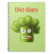 Funny broccoli diet diary with a bright coloured illustration a big eyed cartoon broccoli in distress, waiting to be eaten and customisable text. This funny diet notebook will appeal to a vegetarian, vegan and everyone who loves broccoli. This crazy broccoli illustration is part of my series with three funny vegetables.
