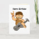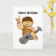 This funny card has a cute, hairy, cartoon caveman on the cover. He's holding a stone (rock!) guitar and smiling, and one hand is raised in a salute.