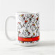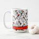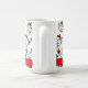 This personalised coffee mug is the perfect gift for someone who likes chickens! It features a pattern of comically drawn cartoon chickens in red, yellow, orange, and black on a white background. The editable text allows you to customise it with names or any message you wish.