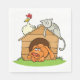 Funny Cartoon Dog Cat and Chicken on Doghouse Napkin