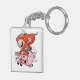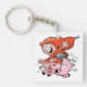 Funny Cartoon Gnome Riding Flying Pig Key Ring