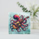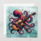 Funny cartoon comic book style octopus playing a guitar ai art. Turquoise abstract background.