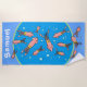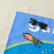 These funny cartoon squid will add fun to any beach or pool visit. Drawn on a blue background with bubbles.