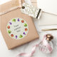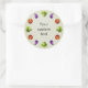 Round customisable funny vegetables sticker with cute and funny cartoon vegetables arranged in a circle and custom text. Red tomato, green broccoli and violet eggplant have an amazed look in their funny big cartoon eyes. This funny sticker would be perfect for cooks and people who love cooking and vegetables.