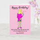 Funny Cartoon Woman Drinking Covid Jab Birthday Card