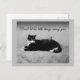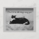 This postcard has a black and white vintage photo of a cat it is lying on its stomach with a parakeet sitting on its back.