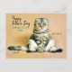 A Scottish Fold Cat Sitting Digital Art Painting. Shorthair Grey Stripe mackerel, Tabby Cat. Dry Humour. Funny Lazy Cat Says: "Happy Father's Day. I made you a cake... but I ate it." The text can be changed to anything that you want it to say.