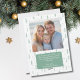 Holiday design features a funny cat inside a present, getting into mischief. It's a meowy Christmas! Flip card over and personalize it with a family photo and change default text to fit your unique needs. Minimalist watercolor pine trees fill the card to complete the holiday vibe.