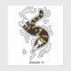 Funny cat sticker with an ink illustration of a weird cat creature swimming with eel like movements. Flesh is somehow stripped from its hands showing its skeleton, yet the cute animal is in its happiest state of mind. That's what sea and ocean make you feel - bliss.