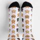 Step into fun with these Funny Cat Faces Pattern Crew Socks! Featuring an adorable, repeating design of various cartoon cat faces—some winking, some smiling, and many sporting festive birthday party hats and stylish glasses—these socks are sure to bring a smile to anyone's face. The vibrant, multi-colored cat heads stand out playfully against a clean white background. Made for comfort and style, they are the perfect accessory for cat lovers, party enthusiasts, or anyone who enjoys a touch of whimsical flair in their wardrobe. Great for gifting or adding a unique twist to your everyday look.