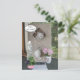 A customisable new address/I've moved post card. Missy has some flowers, a little door mat and a St. Francis statute. We love St. Francis. You can customise the text balloon, and on the back you can add info on your new address. You can also change the fonts. The font in the text balloon is Missy.