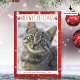 Funny Cat MEOWY CHRISTMAS Photo Red Pawprints Holiday Card