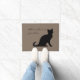 Funny cat quote khaki beige door mat for home. Cute black kitten with vintage saying. A home without a cat is just a house. Make your own fun pet animal doormat with custom colour background. Little kitty design. Add your own welcome message, family name, personalised monogram, surname or funny quote. Cute gift idea for friends, newly weds and family with new home / housewarming party. Custom colour background. Elegant chic script typography. Personalizable doormat sign template. Create your own entry mat / rug for front door / entryway or hall / wedding venue, porch, garden etc. Customisable outdoor home decor / decorations for your house. Available in small and big large size.