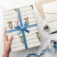 This adorable wrapping paper features string of retro coloured Christmas lights, with a very unhappy cat tangled and suspended from them, on a minimalist ecru ivory background.