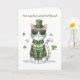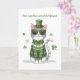 This playful St. Patrick's Day card features a stylish cat dressed in a patterned green sweater, a bowtie, and a hat with a buckle, surrounded by vibrant shamrocks. The cheerful design is full of charm and feline flair, perfect for celebrating the holiday with a touch of humour. The inside message combines Irish cheer with a cat-themed twist, making it a unique and fun way to send St. Patrick's Day wishes to anyone who loves cats or enjoys a bit of lighthearted fun.