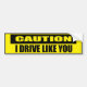 A funny caution bumper sticker with the text "Caution I Drive Like You".
