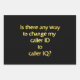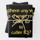 Bright yellow text on a black background poses a humourous question about changing "caller ID" to "caller IQ." The playful message suggests a witty take on modern communication.