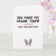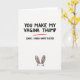 This card features a crisp white background with a big, hand-drawn style line of black text centered near the top, written with cheeky confidence as if it’s teasing someone close. One key word in that top line is singled out with a bright red underline, pulling your attention the way a flirty nudge might. Just below, a smaller second line of black text shifts into a more traditional holiday greeting, creating a funny contrast that feels like an inside joke between friends. The layout stays minimal so the message feels direct, like a note passed across a table with a knowing look. Near the bottom edge, a small springtime bunny 🐰 peeks up into the space, adding a sweet counterpoint to the daring wording. Its simple dark eyes and rounded face give it an innocent, affectionate expression, as if it’s in on the joke but still trying to look polite. The only soft color is the gentle pink inside its ears 🌷, set against the black lettering and that single red underline. The bunny sits centered at the bottom margin, with its ears rising into the white space beneath the text.