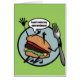 Funny cheeseburger illustration vertical greeting card. Front and inside colours can be customised.
