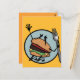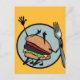 Funny cheeseburger illustration vertical postcard. Back of card is a different colour than the front. Front and back colours can be customised.