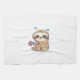 Funny Chibi Sloth Workout Cute Kawaii Gym Cartoon Tea Towel