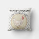 This design is so very whimsical and would make a great gift for a woman or man who loves the rustic shabby chic style. If you live in an old, but charming farmhouse and love the country life, and have pet chickens, then this cute design is just what you want. Features a funny novelty quote that says "Wicked Chickens Lay Deviled Eggs", done in a Black, grunge chalk board, sketchy font that adds a certain interest with it's distressed look. Below it, is a sweet watercolor White chicken on a Tan or Brown circle background. The watercolor is done in such a way to make it look messy, and fun. The pattern in the background is of a chicken wire fence for a coop.