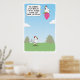This cute and funny cartoon design features a chicken who is in danger of floating away on a pink balloon after first mistaking it for an egg. Meanwhile, Doreen is contemplating whether she should grab the string. This delightful illustration is sure to brighten the day of any lover of chickens!