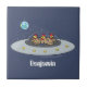 Funny chickens in space cartoon illustration ceramic tile