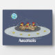 Funny chickens in space cartoon illustration plaque