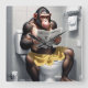 Funny Chimp On A Toilet Clock, Square Wall Clock