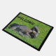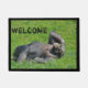 Photograph of a chimpanzee which is lying in the green grass with the text Welcome, but you can also change or delate the text if you want.