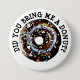 Funny Chocolate Doughnut Doughnut Button. Chocolate doughnut with colourful sprinkles and chocolate frosting.