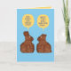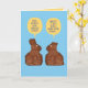 Chocolate Easter bunnies that sort of sound like an old married couple. One with a bite out of their butt says, "Does my butt look smaller to you?" while the other with their ears bitten off says, "What?? I can't hear a word you're saying."