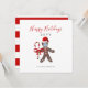 Funny Christmas 2022 Gingerbread Man In Face Mask Card Greeting Card is designed with a cute gingerbread man wearing a Covid-19 mask and red Santa hat. He has peppermint candy for buttons and is holding a candy cane. The greeting is "happy holidays" in red trendy hand lettering followed by custom year and personalised with family's last name. Click personalise option and follow the prompts.