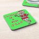 If you think "bah humbug" during the Christmas holiday season and you also enjoy tacky, funny Christmas coaster sets, this is the hilarious design for you. Santa Claus the drag queen is dressed in a lovely red dress with white trim, showing off his hairy legs and holding a sprig of mistletoe while making a grumpy face. The text says, "Christmas is a real drag."