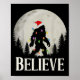 Funny Christmas Bigfoot Santa Hat Moon Sasquatch K Poster