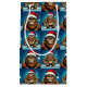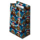 A funny Bigfoot Christmas gift bag with a comic book style pop art sasquatch smiling with a Santa and Christmas lights on.