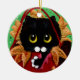 Funny Christmas Black Cat Art Creationarts Ceramic Ornament