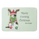 Cute calico cat dressed up in Christmas holiday lights, stuffed antlers, Christmas Santa hat, and a big green bow against a backdrop of light green, The kitty is not happy!