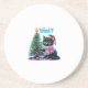 Funny Christmas Cat What with Tree Sticker Coaster