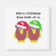 A funny Christmas chickens in Santa Hats, with big eyes and a large beaks. Message can be changed as desired.