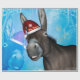 Funny christmas donkey with christmas hat and snowflakes