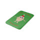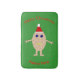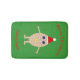This awesome bath mat features a funny cartoon of an egg with arms and legs. The egg has arms and legs and a small crack in its head exposing the white inside. It has blue eyes with a black pupil and a big smile where the yolk of the egg can be seen. The eggshell looks rough. This Christmas egg is wearing a santa hat ready to party this holiday season.