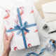 Christmas wrapping paper featuring a funny watercolor flaming dressing up Santa hat.
