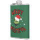 The flask itself is fine. It’s a cheap flask, obviously bought in bulk, however am prepared to overlook that. Given that it is a personalized item, I would have liked to have seen gift boxing instead of the generic packaging. Terrible printing, and/or quality. It’s a cheap, tacky vinyl. It is not cut straight and is also applied in a way that it is overhanging the bottom, causing the glue to catch on items and it will eventually roll and tear, damaging the wrap.
