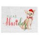 How cute is this little Chihuahua in his or her red Santa cap and matching striped scarf? Send a humourous message that will make the pet lover laugh this holiday season when you choose this woof background and Fleas Navidog theme.