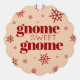 Add a festive, funny touch to year-end and Christmas celebrations and the gift giving experience with this whimsical paper ornament card, which features colourfully dressed grinning gnomes with peaked hats on a peach background sprinkled with snowflakes, and the lighthearted, punny sentiment "Gnome Sweet Gnome". Customise with sender's (sur)name as desired on reverse.